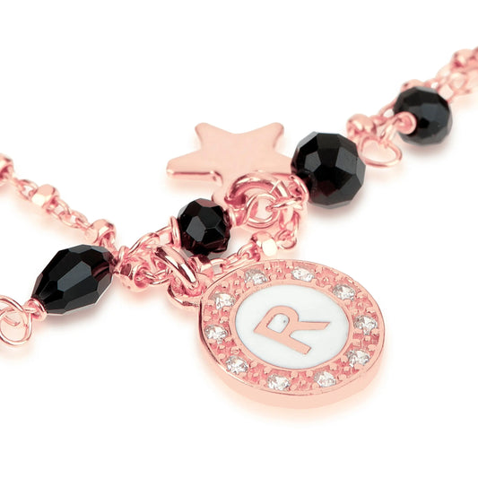 Bracciale Grace in argento 925 placcatura in oro rosa con perle e lettera pendente
