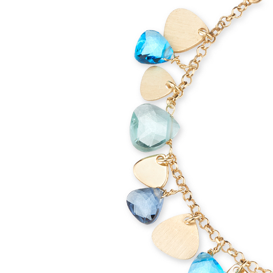 Bracciale Capri in Argento 925 Oro 24KT con Cristalli Azzurri a Goccia