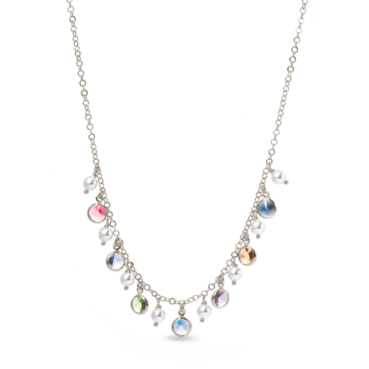 Girocollo Jordan in argento 925 con placcatura in oro bianco e cristalli naturali pendenti alternati