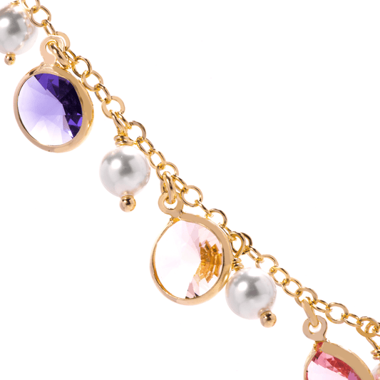 Bracciale Jordan in argento 925 placcato in oro giallo con cristalli naturali multicolor pendenti.