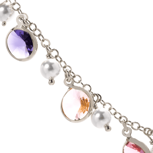 Bracciale Jordan in argento 925 placcato in oro bianco con cristalli naturali multicolor pendenti