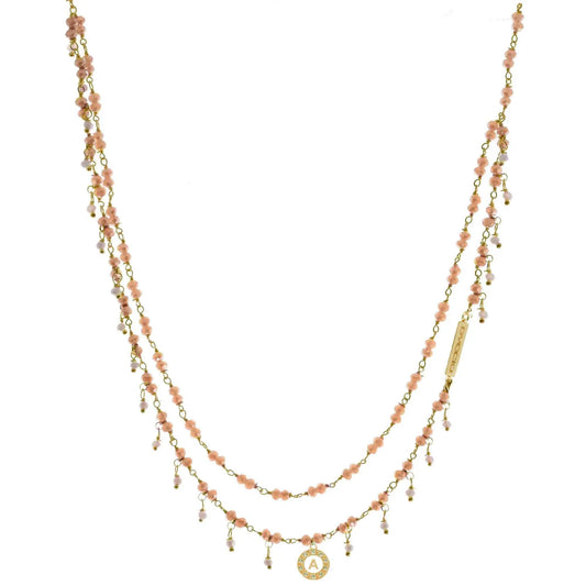 Collana 2 fili Iride in argento 925 dorato con pietre naturali sabbia e quarzo bianco