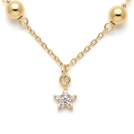 Collana Chérie Stelle in Argento 925 Laminato Oro 24KT con Cristalli