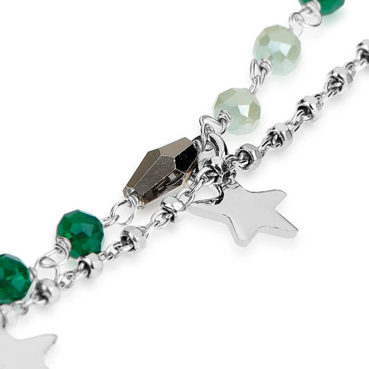 Bracciale a 2 fili in argento 925 rodiato e pietre verdi