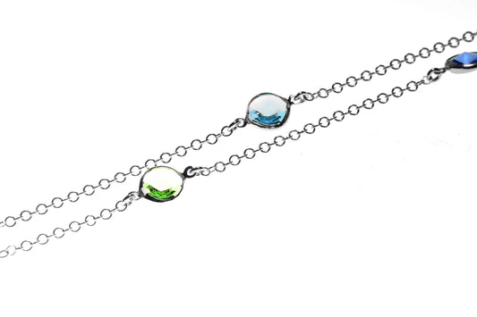 Collana lunga Jordan in argento 925 con placcatura in oro bianco e cristalli naturali multicolor