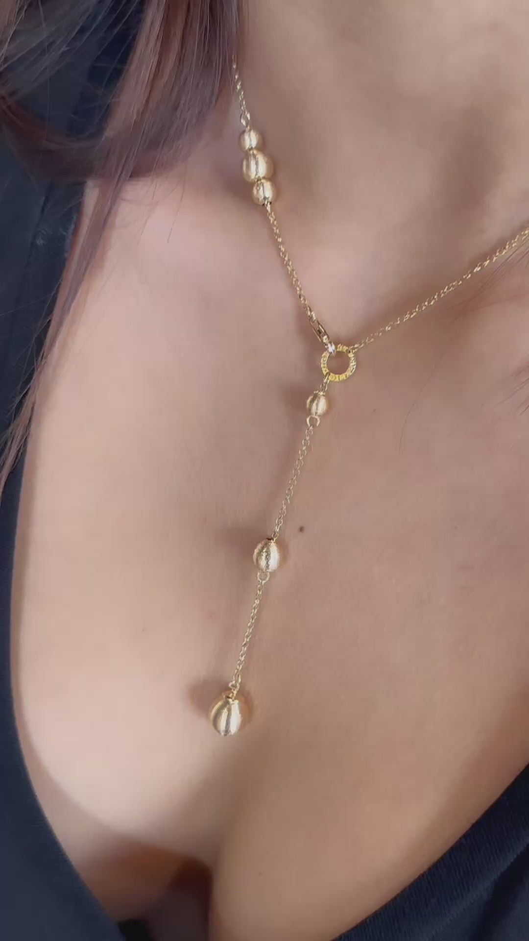 SABA Necklace, 125cm Long | 925 Silver, 24KT Gold Plated, Silky Spheres