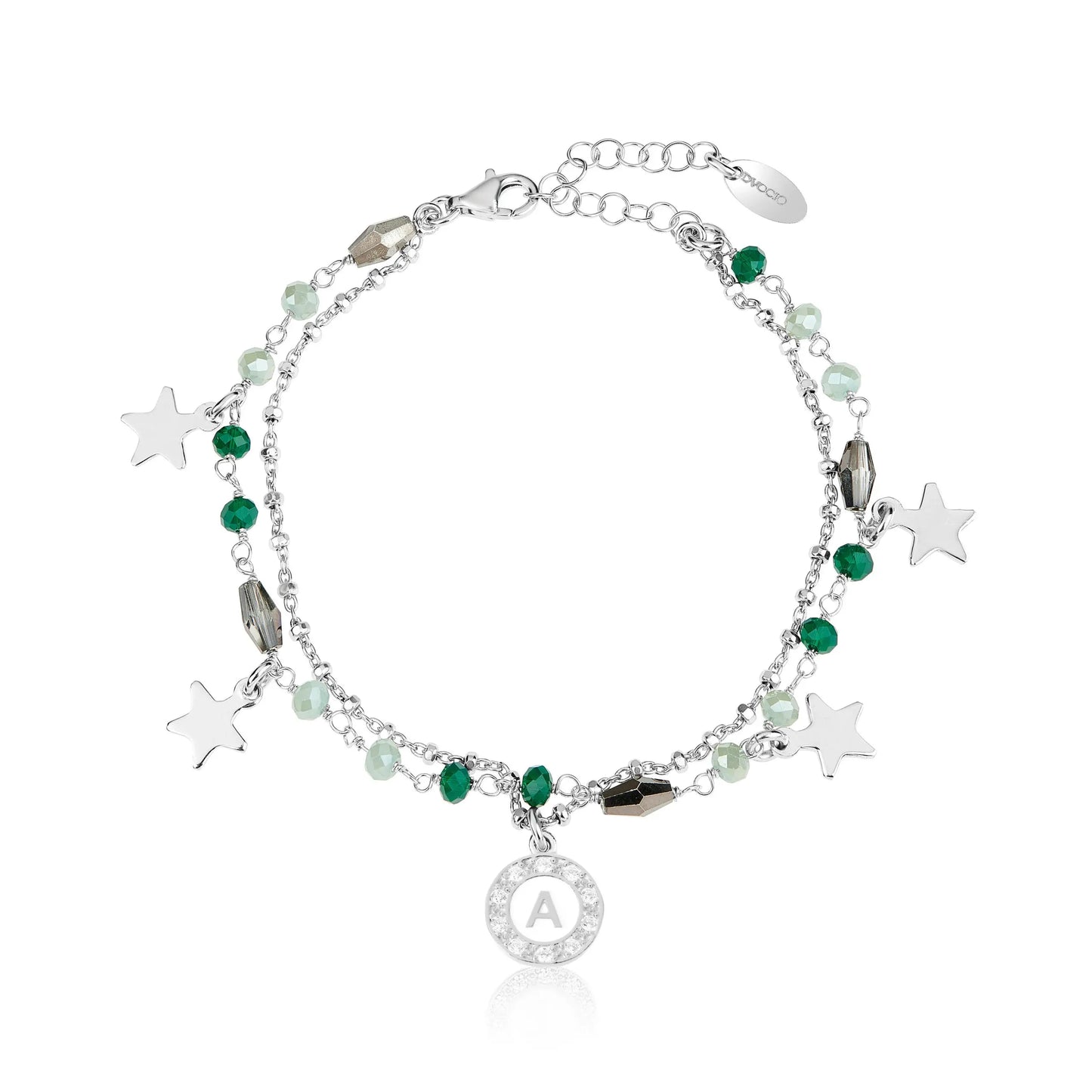 Questo bracciale a due fili Iris in argento 925 rodiato è un'elgante aggiunta al tuo guardaroba. Le pietre verdi multicolore aggiungono un tocco di colore, mentre la lettera iniziale su smalto bianco lo rende unico e personale. Realizzato con argento di alta qualità, è un accessorio perfetto per ogni occasione.
