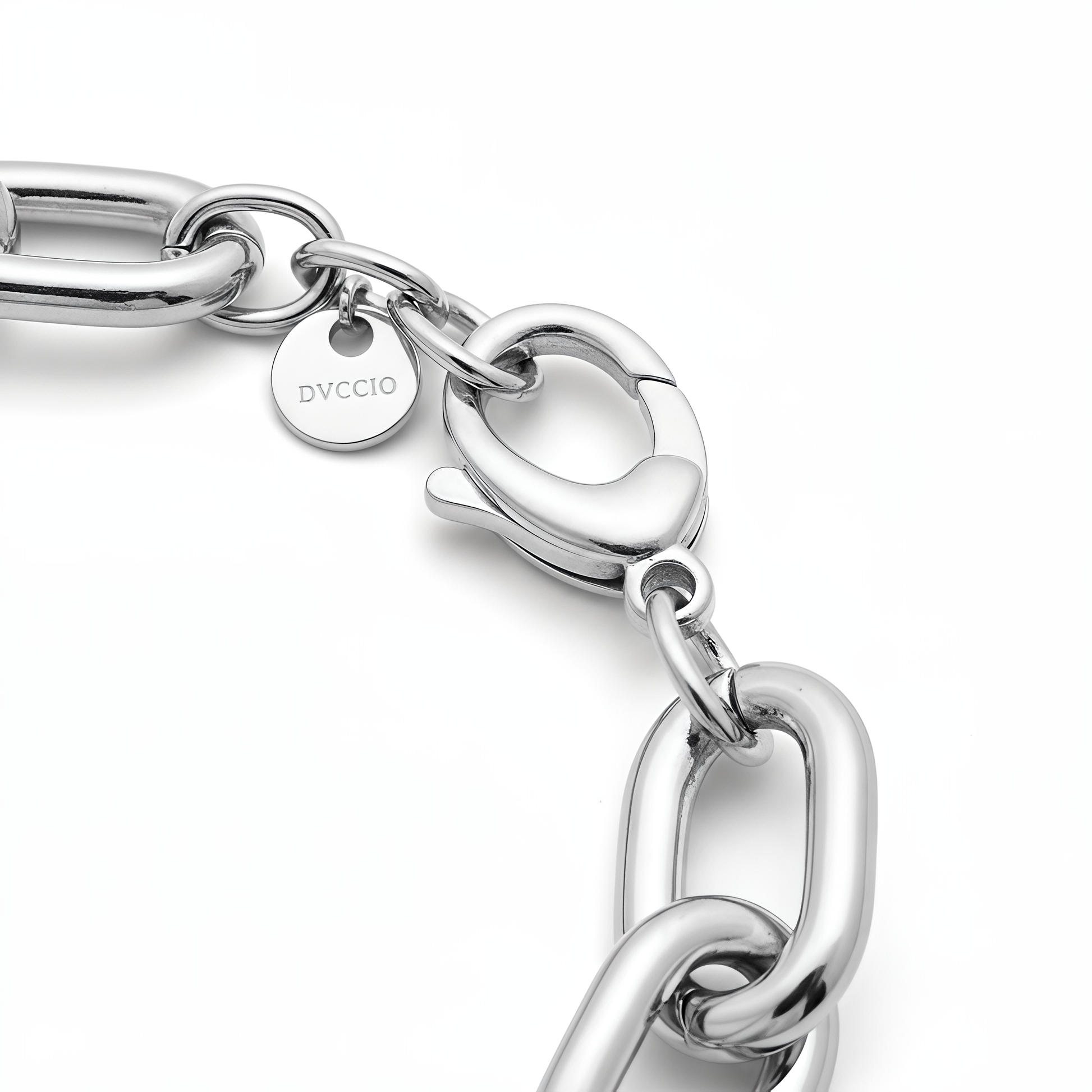 Il Bracciale Catena DVCCIO nasce da una visione chiara del gioiello contemporaneo: una catena dalle maglie piene e armoniche, progettata per esprimere forza, equilibrio e raffinatezza attraverso la semplicità delle forme.