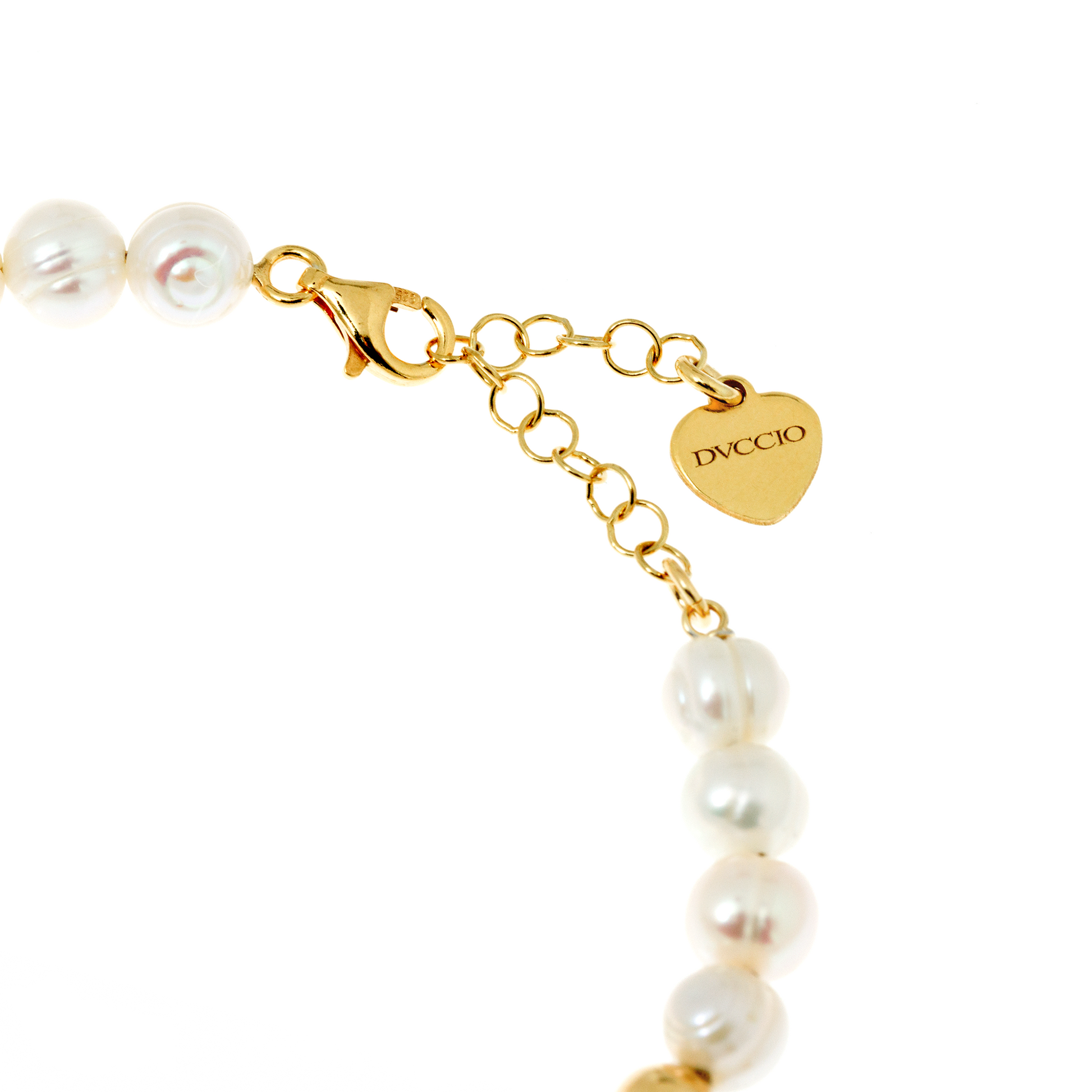 Chiusura regolabile con moschettone e cuoricino finale con logo Dvccio.
