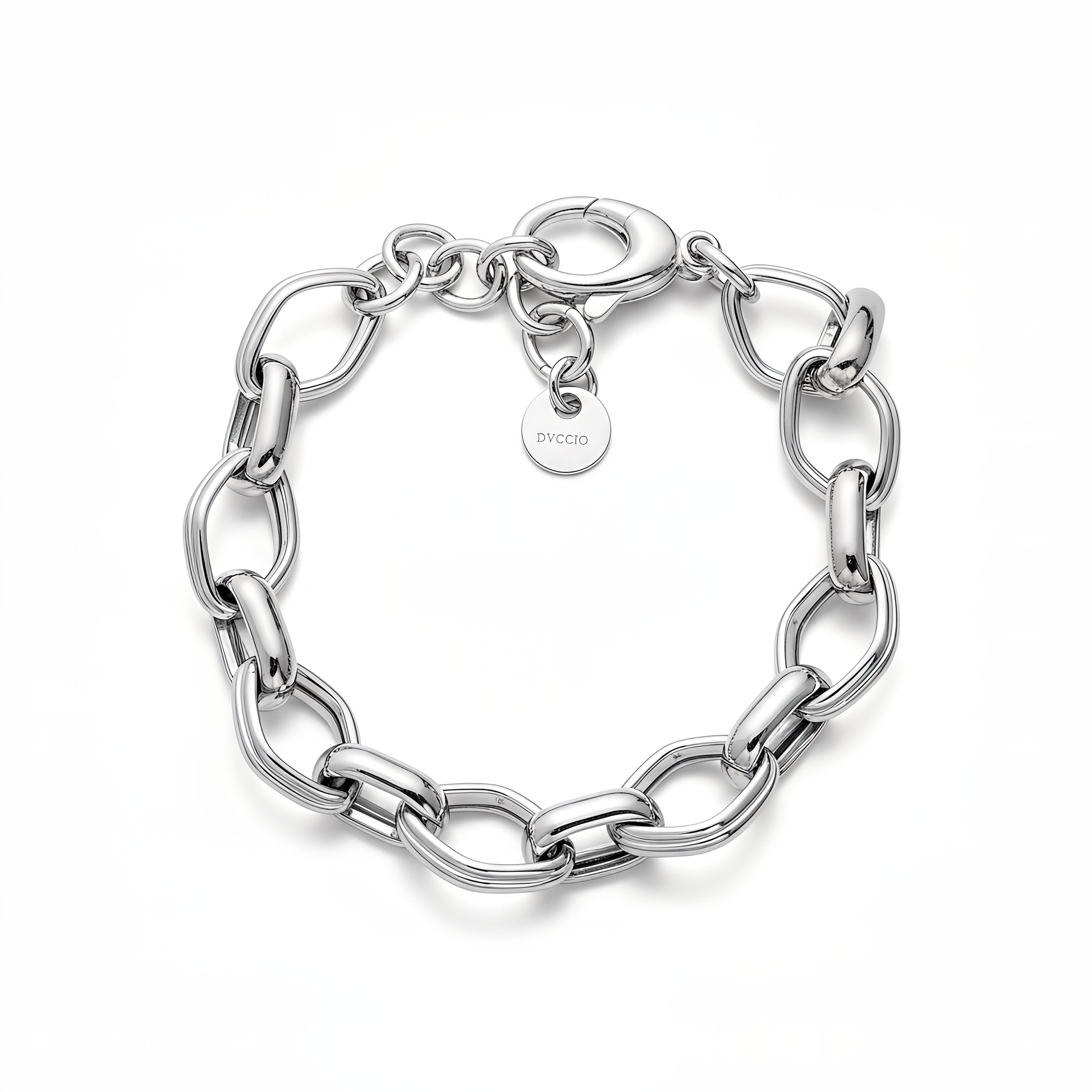 Il Bracciale Catena DVCCIO nasce da un’idea di eleganza essenziale, dove la forma diventa protagonista. Le maglie, piene e arrotondate, si susseguono in un ritmo armonico che avvolge il polso con naturalezza, creando una presenza decisa ma raffinata.