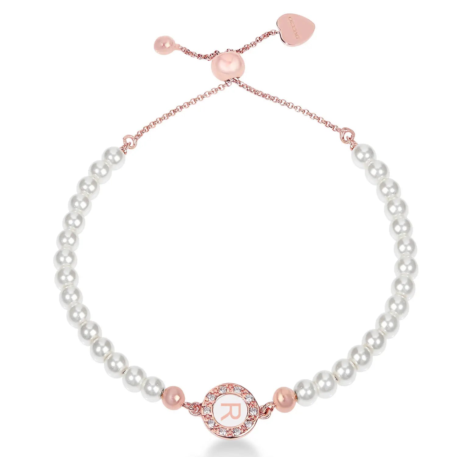 Bracciale Grace in argento 925 placcato in oro rosa regolabile con perle e lettera a seguire
