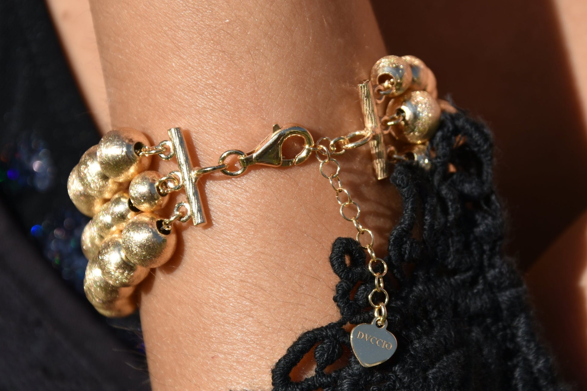 Bracciale SABA a 3 File in Argento 925 Laminato Oro 24KT con Sfere