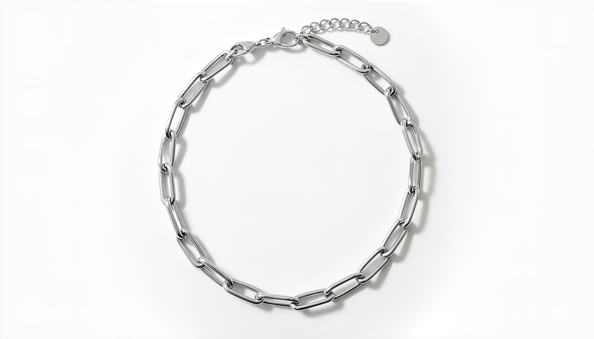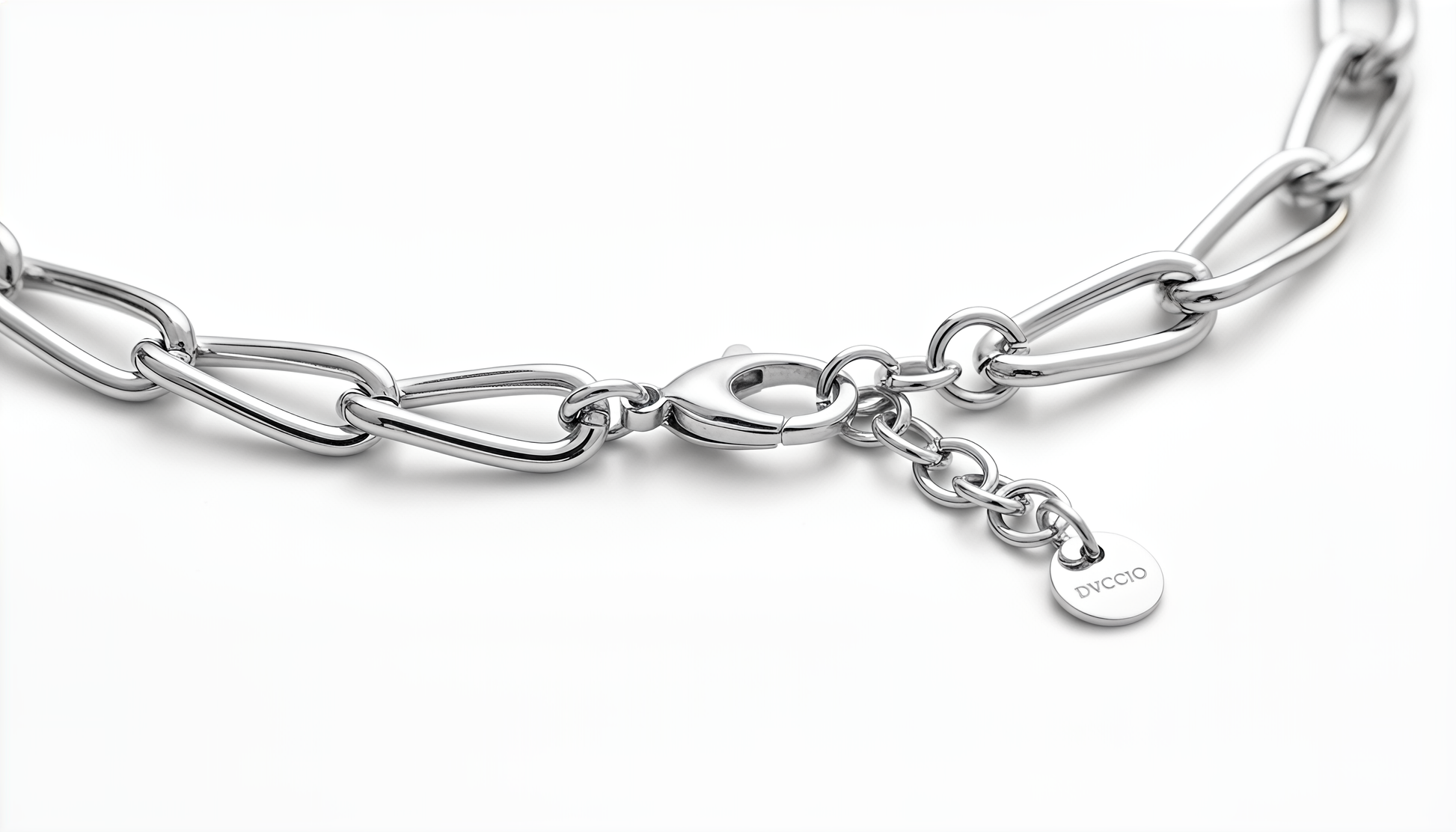 Linee pulite e proporzioni armoniose definiscono questa collana DVCCIO a catena ovale, pensata per chi sceglie un’eleganza essenziale e senza tempo.