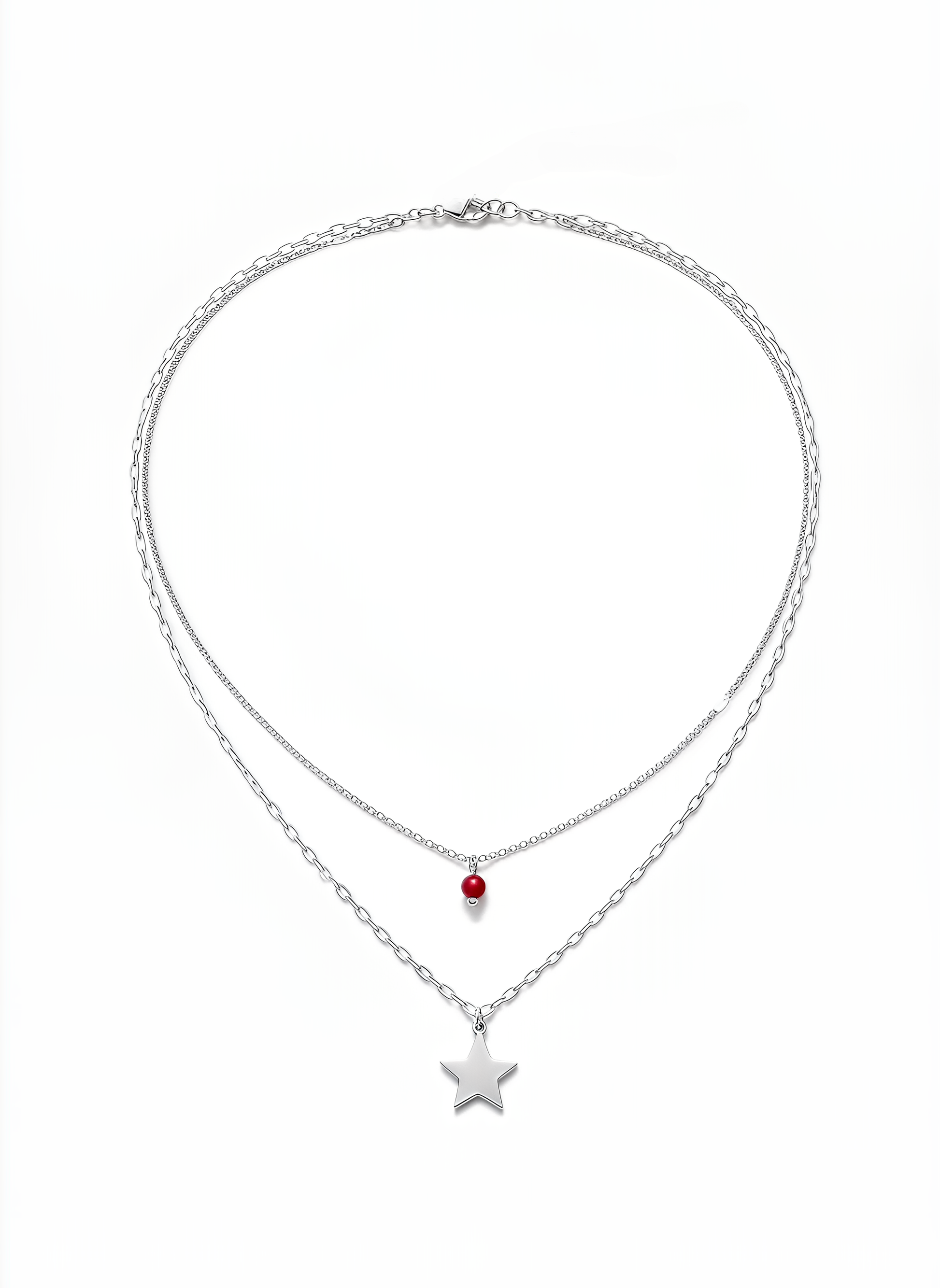 La Collana Chérie Double Star Red è realizzata in Argento 925 con laminatura in Oro 24KT certificato, pensata per chi ama distinguersi con eleganza.