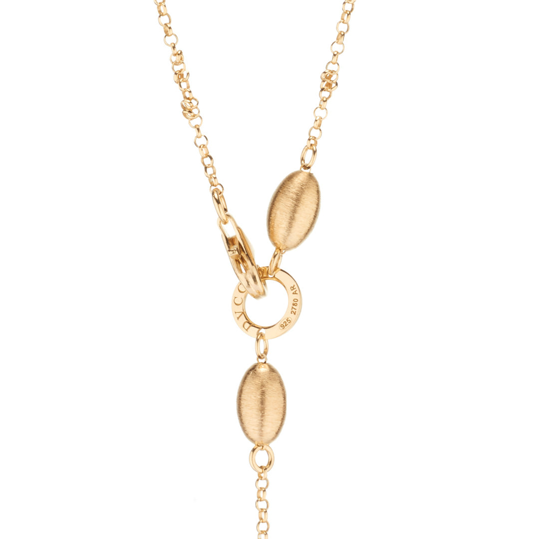 Collana in Argento 925 bagno Oro 24KT, questa collana presenta olive setate e una chiusura a metà altezza nel davanti che regge un pendente, aggiungendo eleganza al tuo look. Realizzata a mano, con una laminatura in oro 24 carati a spessore, questa collana combina la bellezza dell'argento 925 con la brillantezza e la resistenza dell'oro 24KT. Il design con chiusura a metà altezza rende questo gioiello perfetto per chi cerca raffinatezza e gioielli artigianali di alta qualità. Esprimi la tua personalità con una collana luminosa e resistente nel tempo, ideale per aggiungere un tocco di lusso al tuo look.