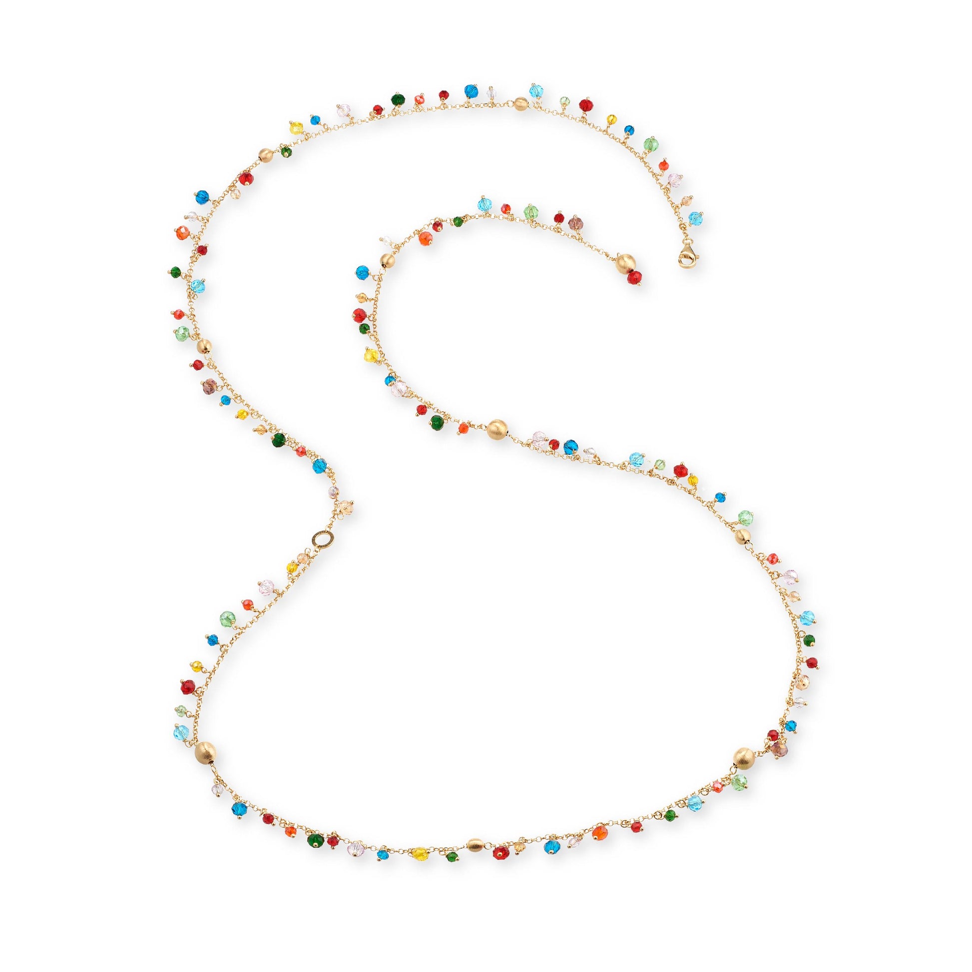 Collana Lunga Formentera in Argento 925 Laminato in Oro 24KT con Cristalli Naturali Multicolor