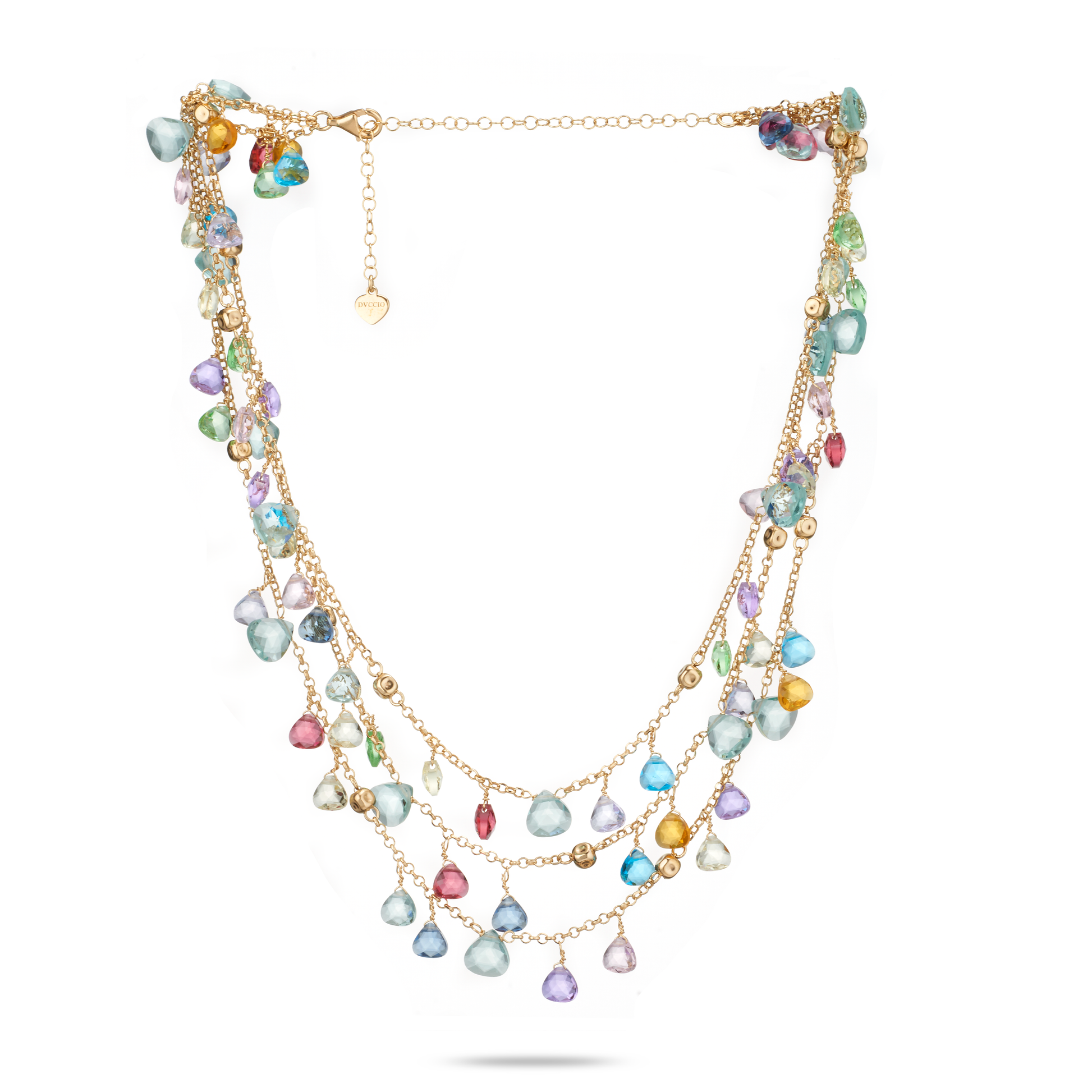 Collana Positano a tre fili in Argento 925 Laminato Oro 24KT, con cristalli naturali a goccia taglio diamante