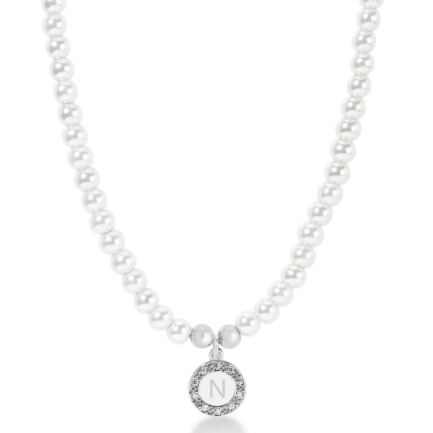 Girocollo Grace in argento 925 placcatura in oro bianco con perle e lettera pendente