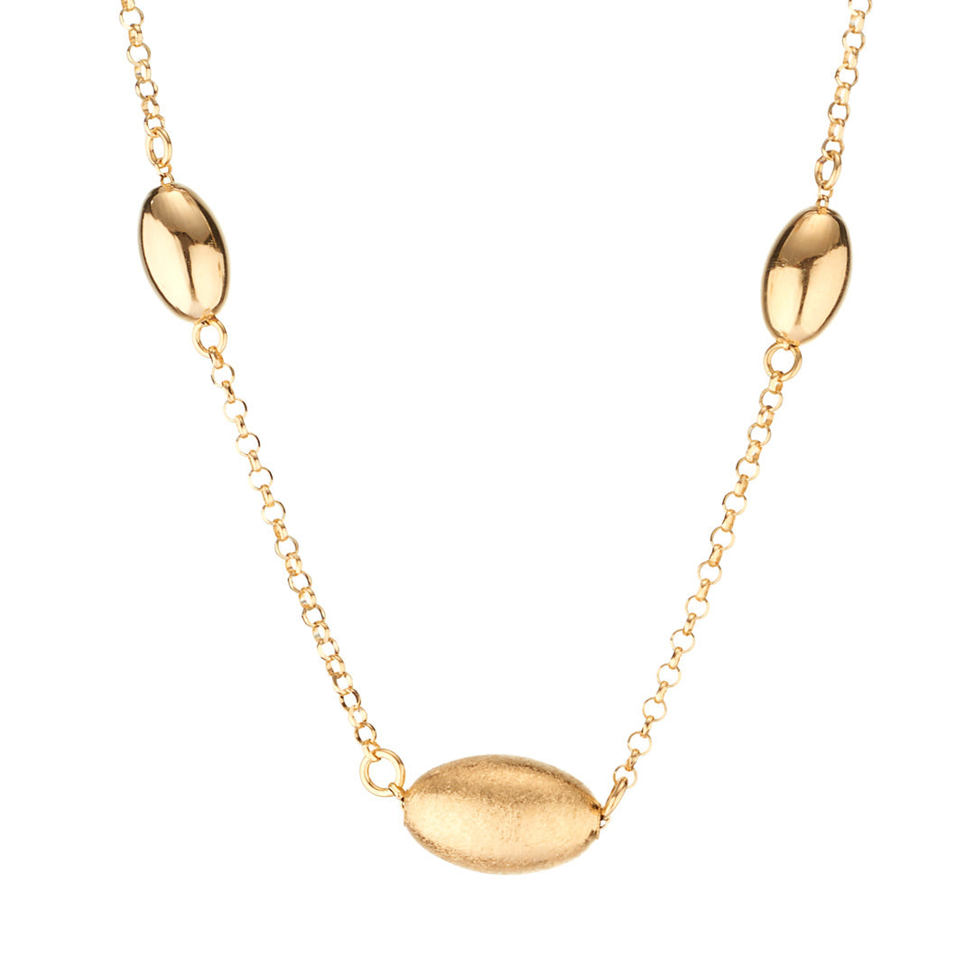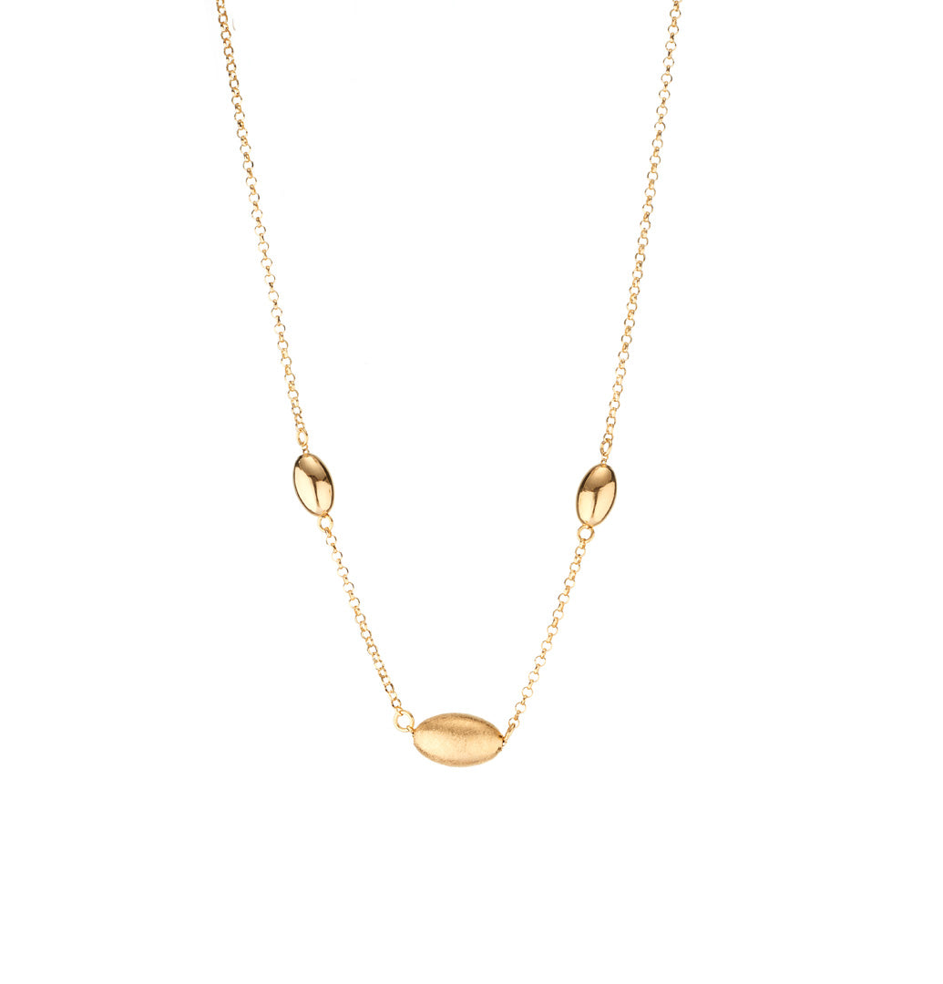 Collana girocollo con tre ovaline centrale satinata e le due laterali lucida in argento 925 con laminatura in oro 24Kt