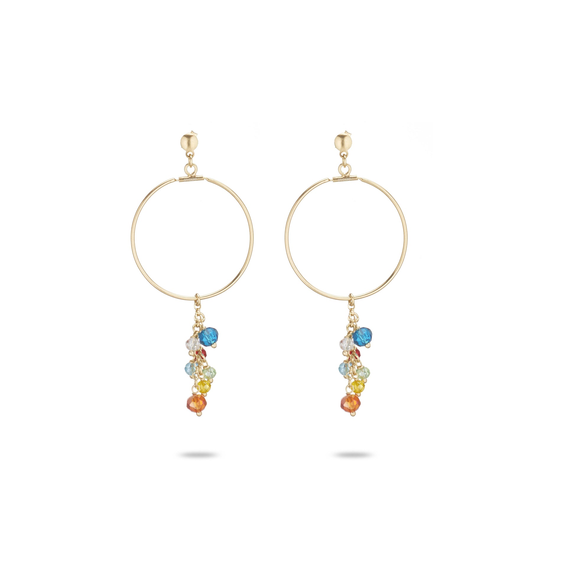 Orecchini Cerchio Formentera in Argento 925 Laminato in Oro 24KT con Cristalli Naturali Azzurri e Ambra